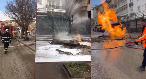 Kırıkkale’de öğle saatlerinde hareketli dakikalar yaşandı. Şehrin en işlek noktalarından biri olan Atatürk Bulvarı üzerinde gerçekleştirilen alt yapı kazı çalışmaları sırasında, iş makinesinin ana doğalgaz hattına temas etmesi sonucu şiddetli bir patlama meydana geldi. Patlamanın hemen ardından yükselen alevler çevrede kısa süreli paniğe yol açtı. Olayın ihbar edilmesi üzerine Kırıkkale Belediyesi İtfaiye ekipleri çok kısa sürede bölgeye ulaştı. Yangının şiddetini artırması üzerine itfaiye erleri, alevlerin yol kenarında bulunan binalara ve park halindeki araçlara sıçramaması için yoğun bir "soğutma ve koruma" koridoru oluşturdu.