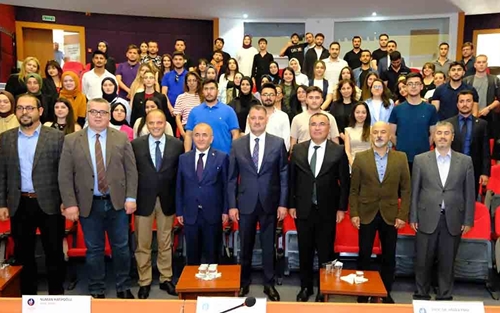 Vali Mülkiye Başmüfettişi İstanbul Havalimanı Mülki İdare Amiri Doç. Dr. M. İlker Haktankaçmaz, “Sayın Valim, değerli hocalarım ve değerli arkadaşlarım bugün sizlerle olmaktan dolayı çok mutluyum. Bizde sizler gibi Kamu Yönetimi Bölümü mezunuyuz. Yıl sonu gelince bize sorarlardı 'Okuyorsun da ne olacaksın?' derlerdi. Nasipte varmış kaymakam olmuştum. Benim hem eski sistemde hem de şu anki sistemde görev yapma fırsatım oldu. 'Devletin ve hükümetin temsilcisi ayrı ayrı her bakanın temsilcisi ve idari ve siyasi yürütme vasıtasıdır.' valinin görev tanımı budur. Burada özellikle siyasi yürütme vasıtasıdır sözünün altını çizmek istiyorum. Valilerin aslında siyasi olarak da bir görevi var. Tabi bunu kararında tutmak lazım siyasi bir partinin il başkanı gibi hareket etmesi ne kadar yanlışsa 'milletvekili veya siyaset ne derse desin bana ne kardeşim' demesi de o kadar yanlıştır. Vali her bir bakana karşı ayrı ayrı sorumludur.'' ifadelerini kullandı.