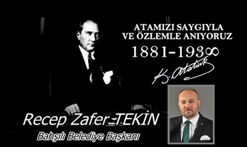 Gazi Mustafa Kemal Atatürk'ün ebediyete intikalinin 81. yıldönümü dolayısıyla bir mesaj yayımlayan AK Parti Bahşılı Belediye Başkanı Recep Zafer Tekin, Gazi Mustafa Kemal Atatürk'ü rahmet ve saygıyla andıklarını belirtti. Başkan Tekin, mesajında Cumhuriyetimizin kurucusu, Gazi Mustafa Kemal Atatürk'ü, vefatının 81. yılında rahmet, minnet ve şükranla andığını belirterek, "10 Kasım, Türkiye Cumhuriyeti'nin kurucusu Gazi Mustafa Kemal Atatürk'ün ideallerini gerçekleştirme konusundaki kararlılığı göstermemiz gereken bir gündür. Bu günde bizlere düşen en büyük görev, Atatürk'ü ve en büyük eseri Cumhuriyet'i anlamak, Cumhuriyet'in değerlerini her koşulda korumak ve milletimizin çağdaş dünyada saygın bir yer edinebilmesi için, yorulmaksızın gayret etmek ve çalışmaktır. Bu duygu ve düşüncelerle, Cumhuriyetimizin kurucusu, Gazi Mustafa Kemal Atatürk'ü, silah arkadaşlarını, vatan uğruna hiç düşünmeden canlarını feda eden kahraman şehitlerimizi, gazilerimizi, İstiklal mücadelemizin tüm kahramanlarını bir kez daha rahmet ve şükranla anıyorum" dedi.