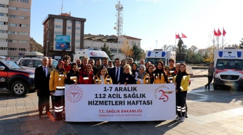 112 Acil Sağlık Hizmetleri Haftasının 25. Yılı için Kırıkkale 112 Acil Sağlık Hizmetleri ekipleri özel program hazırladı. 15 Temmuz Cumhuriyet ve Demokrasi Meydanda yapılan etkinlikte vatandaşlara ilimizde hizmet veren ambulanslar, motosiklet ambulanslar, obezite ambulanslar, çoklu hasta müdahale ambulansı, UMKE araçları yakından tanıtıldı. Ayrıca katılımcılara özel olarak hazırlanan maket ile acil durumda bir kişinin hayatını kurtarmaları için neler yapmaları konusunda hayati bilgiler 112 ekiplerimiz tarafından verildi. Gerçekleştirilen etkinliğin açılışına İl Sağlık Müdürü Dr. Murat Ağırtaş, İl Müftüsü Şahin Yıldırım, İl Milli Eğitim Müdürü Yusuf TÜFEKÇİ ve çeşitli davetliler katıldı. Tek tek stantları gezerek ve içerisinde bulunan ekipmanları inceleyerek 112 ekiplerinden bilgiler alan katılımcılar, fotoğraf ve resim yarışmasında dereceye girenlere ödüllerini verdikten sonra başarılar dileyerek alandan ayrıldılar.