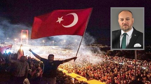 15 Temmuz darbe giriÅŸimi baÅŸta olmak üzere ülkemizin aydınlık geleceÄŸi uÄŸruna, vatan aÅŸkıyla canını hiçe sayan ÅŸehitlerimize bir kez daha Allah'tan rahmet diliyor, gazilerimizi ÅŸükran ve minnetle anıyorum. Ebediyete intikal eden tüm ÅŸehitlerimiz ile gazilerimizin ailelerinin ve yakınlarının onların bize emaneti olduÄŸu gerçeÄŸinden hareketle daima yanlarında olacağımızı da bir kez daha vurguluyoruz" ÅŸeklinde belirtti.