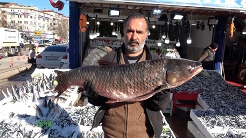 Kırıkkaleli bir balıkçının oltasına takılan 25 kilogramlık sazan balığı görenleri şaşırtıyor. Kırıkkale'de 35 yıldır balıkçılık yapan Tamer Çelik'in oltasına takılan 25 kiloluk sazan balığı görenleri hayrete düşürdü. 25 kiloluk sazan balığı, hem görüntüsü hem de ağırlığıyla dikkat çekiyor. 120 liradan satışa çıkarılan sazan balığı alıcısını bekliyor. Etinin lezzetli olduğunu belirten Çelik, "Bu balığın adı sazandır, Hirfanlı Barajı'ndan tutuyoruz. Sazan, yayın balığı, levrekler genellikle Hirfanlı Barajı'ndan çıkıyor. Bizim Kırıkkale'nin meşhur balıklarıdır. Hirfanlı Barajı'nın balıklarıdır. Bunların daha büyükleri de var. 40 kilogram gelenleri de var. Bu normalde 25 kilogram. Bunun daha büyükleri 50 kiloya kadar gelir. Çok şahanedir içi kırmızı olur çok lezzetli bir balıktır. Bunun en güzeli mangal yapıp yiyeceksin. Çok lezzetli bir balıktır. Bizim Kırıkkale'ye hastır" dedi.