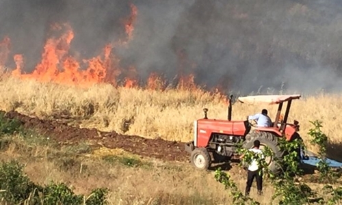 Kırıkkale'nin Sulakyurt ilçesinde buğday, arpa, pancar ve kavun ekili olduğu 500 dönümlük tarım arazisi çıkan yangında küle döndü. Yangın, Sulakyurt ilçesine bağlı Yeşilyazı köyünde meydana geldi. Edinilen bilgiye göre, biçerdöverin tabla bölümü seyir halinde ilerlerken yere sürtünmesi sonucu çıkan kıvılcımdan dolayı yangın çıktı. Rüzgarın da etkisiyle alevler 10 dakika içerisinde büyüdü. 500 dönümlük alandaki buğday, arpa, pancar ve kavunun ekili olduğu tarım arazisi çıkan yangında küle döndü. Yangın ihbarını alan Sulakyurt Belediyesi İtfaiye ekibi ile Tarım ve Orman Müdürlüğüne bağlı ekipler arazide çıkan yangına müdahale etti. Belediyeye ait iş makineleri de yangına toprak örterek çalışmalarını sürdürdü. 2 saat içerisinde söndürülen yangında büyük çaplı maddi hasar meydana geldi. Yangınla ilgili soruşturma başlatıldı.
