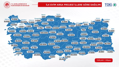 Cumhuriyet tarihinin en büyük sosyal konut hamlesi kapsamında ilk evim arsa başvuruları devam ediyor. 10 Ekim 2022’da başlayan başvurular 7 Kasım 2022 tarihine kadar devam edecek. Kırıkkale’de Merkez 3 bin, ilçelerde 500 adet olmak üzere 7 bin Konut arsası için başvurular yapılacak.