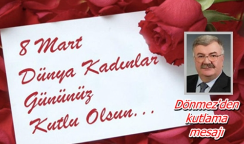 Dönmez mesajında, "EÅŸit ÅŸartlarda dünyaya gelen insanların yarısını oluÅŸturan kadınların sosyal hayatta karşılaÅŸtıkları cinsiyet ayrımcılığının giderilmesini, toplumsal cinsiyet eÅŸitliÄŸinin saÄŸlanmasını, hayatın her alanında var olma mücadelelerini simgeleyen 8 Mart Dünya Kadınlar Günü; birlik, beraberlik ve dayanışma günü olarak kutlanmaktadır. Kadınlarımızın eÄŸitimli, bilgili ve bilinçli olması saÄŸlıklı bir toplumun ön ÅŸartıdır. Dünyanın hiçbir yerinde görülmemiÅŸ mücadeleler veren Türk kadını, büyük bir özveri ve hassasiyetle dün olduÄŸu gibi bugün de saÄŸlıklı, mutlu ve güzelliklerle dolu geliÅŸmiÅŸ bir toplum olmanın mihenk taşı olma özelliÄŸini koruyarak ülkemizi daha aydınlık yarınlara taşıyacaktır. İnsan hak ve özgürlüklerinin geliÅŸmesi, demokrasi kültürünün yerleÅŸmesi ile kadınlar, eÄŸitimden bilime, sanattan siyasete hayatın her alanında baÅŸarı ile yerini almaktadır.