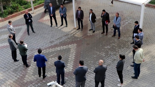 Kırıkkale'nin Yahşihan Belediyesi, korona virüs (Kovid-19) önlemlerini üst düzeye çıkardı. Haftalık olarak gerçekleştirdiği birim müdürleri toplantısını açık alanda sosyal mesafeyi koruyarak gerçekleştirdi. Yahşihan Belediye Başkanlığı, Çin'de ortaya çıkan ve tüm dünyayı tehdit eden korona virüse (Kovid-19) salgınına karşı tedbirlerini almaya devam ediyor. Belediye Başkanı Osman Türkyılmaz öncülüğünde her hafta gerçekleştirilen birim müdürleri toplantısı korona virüsü (Kovid-19) salgını nedeniyle açık alanda gerçekleştirildi. Toplantı sırasında birer metrelik sosyal mesafe kuralına da uyulduğu görüldü. Başkan Türkyılmaz, virüse karşı ilçe merkezinde önlemlerini üst düzeye çıkartıldığını belirtti.