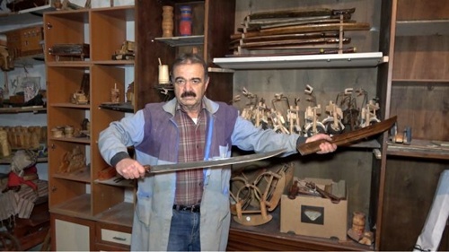 Kırıkkale'de 25 yıldır ahşaba şekil veren Emir Elitok adındaki usta, evinin bahçesindeki 15 metrekarelik atölyede ahşaptan yaptığı binin üzerindeki hediyelik eşya ve organik oyuncakları garajında sergiliyor. Elitok, "plastik oyuncaklardan uzak durması için organik oyuncakları ekonomik olarak satıyorum" dedi.