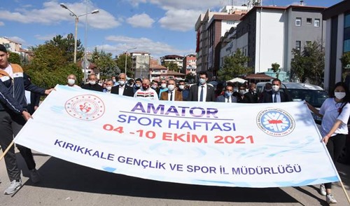 Amatör Spor Haftası etkinlikleri çerçevesinde ilk olarak protokol üyelerinin ve sporcuların katıldığı bir yürüyüÅŸ gerçekleÅŸti. Mehteran takımı öncülüÄŸünde Fevzi Çakmak Caddesi, Atatürk Bulvarı takiple Cumhuriyet Meydanında son buldu. Saygı duruÅŸu ve İstiklal Marşının okunmasından sonra bir konuÅŸma yapan Kırıkkale Gençlik ve Spor Åžube Müdürü Turan Yılmaz, "Gençlik ve Spor Bakanlığı Spor Genel MüdürlüÄŸü ile Türkiye Amatör Spor Kulüpleri Konfederasyonu tarafından birlikte düzenlenen ve Türkiye'de 81 ilde 4 -10 Ekim 2021 tarihleri arasında kutlanacak olan amatör spor haftası kapsamında planlanan faaliyetler ile farkındalık oluÅŸturulacak.