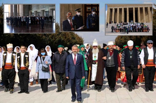 Türkmen Alevi Bektaşi Vakfı, "Uluslararası Hoca Ahmet Yesevi'den Günümüze Gönül Erenleri-8" etkinliği dolayısıyla Anıtkabir'e ziyaret gerçekleştirdi. Türkmen Alevi Bektaşi Vakfı, 7-13 Mart'ta gerçekleşen "Uluslararası Hoca Ahmet Yesevi'den Günümüze Gönül Erenleri-8" kapsamında Ankara, Kırıkkale ve Nevşehir illerinde kültürel etkinlik gerçekleştiriyor. Türkmen Alevi Bektaşi Vakfı Genel Başkanı Özdemir Özdemir ve beraberinde Alevi-Bektaşi dede ve babalarının da bulunduğu heyet Anıtkabir'e ziyaret gerçekleştirdi. Heyet, Ata'nın huzuruna çelenk bırakılmasının ardından Misak-ı Milli Kulesi'ne geçti.