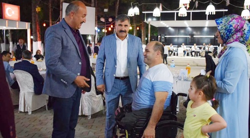 İlçede bir çay bahçesinde düzenlenen programda, şehitler için Kur'an-ı Kerim okundu, dua edildi. Türkyılmaz, "Bu ülke için canını feda eden şehitlerimizin mekanı cennet olsun. Bilsinler ki aileleri bizlere emanettir. Allah'ın izniyle bu güzel ülkeyi bölmeye kimsenin gücü yetmeyecektir. Bu ülke bir ölüp bin dirilenlerin ülkesidir. Gazilerimizin de başımız üzerinde yerleri vardır, herhangi bir istekleri olursa emir telakki eder derhal halletmenin yolunu buluruz. Bizleri kırmayarak davetimize icabetinizden dolayı hepinizi saygıyla selamlıyorum." diye konuştu. Programa, Kaymakam Fatih Yılmaz da katıldı.