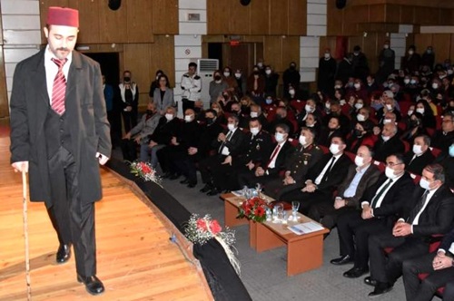 İl Milli Eğitim Müdürü Yusuf Tüfekçi, törende yaptığı konuşmada, Mehmet Akif'in 1921 yılında yazdığı İstiklal Marşı'nın mecliste 4 defa ayakta dinlenerek Türk milletinin marşı olarak kabul edildiğini söyledi. Şairin bu marşın mısralarında milletiyle iftihar ettiğine dikkati çeken Tüfekçi, "Mehmet Akif, içerisinde yaşadığı asrı bütün teferruatıyla gören, anlayan ve bu asrı memleketine anlatan nadir şairlerimizdendi. O, çağdaşı fikir ve edebiyat insanlarından farklı olarak kültür, ahlak, asalet, düşünce bakımından ilim ve irfan sahibi olduğu kadar mücadeleci bir ruha sahiptir. Onu hatırlamak değil, öğrenmek lazım." diye konuştu.