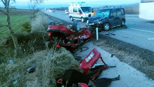Kırıkkale'de kontrolden çıkan otomobilin demir bariyerlere çarparak şarampole devrildiği kazada, karı-koca yaralandı. Kaza, Kırıkkale-Çorum D200 karayolu Yüksek Hızlı Tren İstasyonu önünde meydana geldi. Edinilen bilgiye göre, T.D. idaresindeki 06 TY 572 plakalı otomobil, sürücüsünün direksiyon hakimiyetini kaybetmesi sonucu kontrolden çıkarak demir bariyerlere çarptı. Büyük çapta maddi hasarın meydana geldiği kazada, araç sürücüsü T.D. ile eşi C.D. yaralandı. 112 Acil Çağrı Merkezi'ne yapılan ihbar üzerine olay yerine sağlık ve polis ekipleri sevk edildi. Yaralılar, olay yerinde yapılan ilk müdahalenin ardından ambulanslarla hastaneye kaldırıldı. Tedavi altına alınan iki yaralının da sağlık durumunun iyi olduğu öğrenildi. Trafik ekiplerince yapılan incelemenin ardından araç otoparka çekildi.