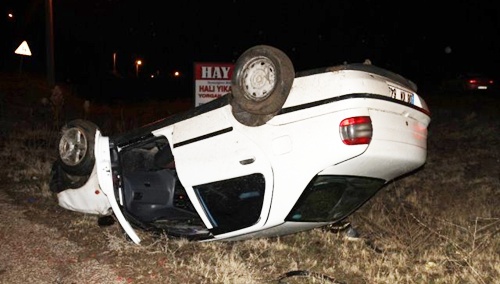 Kırıkkale'de kontrolden çıkan bir otomobilin takla atıp, ters devrilmesi sonucu 2 kişi yaralandı. Kaza, gece saatlerinde Kırıkkale'de Alparslan Türkeş Bulvarı üzerinde meydana geldi. Edinilen bilgiye göre, Ahmet E. idaresindeki 06 KM 646 plakalı otomobil, sürücüsünün direksiyon hakimiyetini kaybetmesi sonucu takla atıp, şarampole ters devrildi. Olay yerinde 112 Acil Servis ekipleri sevk edildi. Kazada yaralanan sürücü Ahmet E. ile yolcu olarak bulunan M.Ş. (23) ambulansla hastaneye kaldırıldı. Tedavi altına alınan yaralıların sağlık durumunun iyi olduğu öğrenildi. Kazayla ilgili soruşturma başlatıldı.