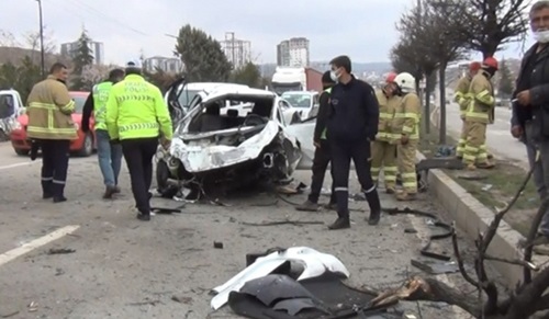 Ali B.'nin (55) kullandığı 71 BJ 466 plakalı otomobil, Kırıkkale-Kayseri karayolunun 5.kilometresi Yahşihan Mezarlık Kavşağı’nda kontrolden çıkarak karşı şeride geçtikten sonra savrularak Polis Memuru Zakir K. (43) idaresinde 71 AAE 595 plakalı otomobilin üzerine düştü. Kazada ağır yaralanan her iki sürücü de araçlarda sıkıştı. Olay yerine 112 Acil Servis, itfaiye ve polis ekipleri sevk edildi. Araçlarda sıkışan sürücüler, ekiplerin yardımı ile çıkarılarak yapılan ilk müdahalenin ardından ambulanslarla kentteki hastanelere kaldırıldı. Kırıkkale Polis Meslek Yüksekokulunda görevli sürücü Polis Memuru Zakir K. ile diğer sürücünün hayati tehlikelerinin devam ettiği öğrenildi. Kazada araçlardan kopan motor ve parçalar metrelerce uzağa fırlayarak çevreye yayıldı. Orta refüjdeki ağaçlar da kazanın şiddetiyle yerinden söküldü. Kaza nedeniyle Kırıkkale-Kayseri karayolu bir süreliğine araç trafiğine kapandı. Araçların yoldan kaldırılmasının ardından yol tekrara trafiğe açıldı.
