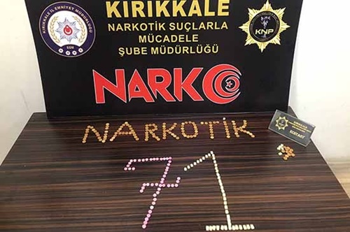 Kırıkkale Cumhuriyet Başsavcılığı koordinesinde Narkotik Suçlarla Mücadele Şube Müdürlüğü görevlilerince uyuşturucu madde kullanan ve ticareti yapan şahıslar üzerinde çalışmalar yapıldı. Kırıkkale Valiliğinden yapılan açıklamada "İ.A. ve M.B. isimli şahısların araçlarında yapılan aramada 249 adet ECTASY uyuşturucu hap maddesi ele geçirilmiş olup şahıslar çıkarıldığı mahkemece TCK 188 suçundan tutuklanmıştır” denildi.