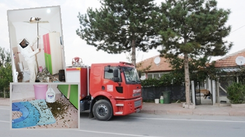 Atadönmez Mahallesi'nde yaşayan 64 yaşındaki Elife Karagöz, banyo tavanında sesler gelince tavanı açtı. Bu sırada tavan ile çatı arasına yuva yapan arılar evin içerisine dağıldı. Karagöz'ün durumu itfaiye ekiplerine bildirmesi üzerine ekipler, evin çatısını açarak ilaçlama çalışması yaptı. İtfaiye ekiplerine teşekkür eden Karagöz, "Arılar oğluma zarar verdi. Korkudan evde duramadık. Belediyemizden Allah razı olsun." dedi.