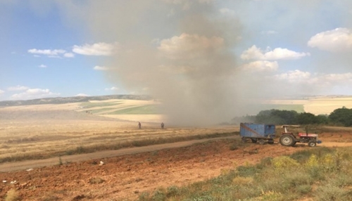 Kırıkkale'nin Keskin ilçesinde arpa ekili tarlada çıkan yangın zarara neden oldu. Alınan bilgiye göre, Cinali mevkisinde arpa ekili tarlada henüz belirlenemeyen nedenle yangın çıktı. Rüzgarın da etkisiyle alevler kısa sürede diğer tarlalara ve anız alanlarına sıçradı. Vatandaşların haber vermesi üzerine olay yerine polis, Keskin Belediyesi ile Orman İşletme Müdürlüğüne ait ekipler sevk edildi. İş makinelerinin de müdahale ettiği yangın, yaklaşık 2 saatlik çalışmanın ardından kontrol altına alındı. Soğutma çalışmalarının devam ettiği yangında, Kırıkkale-Kırşehir kara yolundan geçen bazı araçlardan inen vatandaşlar da yangını söndürmek için çaba harcadı. Yaklaşık 400 dönüm arpa tarlası ve anız alanı zarar gördü.