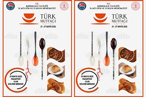T.C.Cumhurbaşkanlığı ve Emine Erdoğan'ın himayelerinde, Kültür ve Turizm Bakanlığının desteği ile hazırlanan “Asırlık Tariflerle Türk Mutfağı” kitabından hareketle hayata geçirilen "Türk Mutfağı Haftası" 2022 yılından itibaren ülkemizde ve dış temsilcilikler aracılığı ile tüm dünyada dikkat çekecek düzeydeki etkinliklerle kutlanacak. Bu kapsamda Kırıkkale İl Kültür ve Turizm Müdürlüğü koordinasyonuyla Kırıkkale'de çeşitli etkinlikler gerçekleştirilecek. İl Kültür ve Turizm Müdürlüğü, Kırıkkale İl Milli Eğitim Müdürlüğü ve Kırıkkale Belediyesi iş birliği ile 23 Mayıs 2022 Pazartesi günü Türk Mutfağı üzerine konuşma ve slayt gösterisi ile Türk Mutfağı Haftası yemek sunumu ve tadımı gerçekleştirilecek.