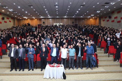 Rektör Prof. Dr. Ersan Aslan, geçmişimizde uçak ve araba üretimi gibi teknolojik hamlelerimiz engellense de günümüzde milli gemimizi, tankımızı, insansız hava aracımızı, helikopterimizi, uydumuzu üretecek seviyeye geldiğimizi belirterek, gençlerimizin bilimsel ve teknolojik üretim süreçleri ile Ar-Ge çalışmaları içinde bulunma gayreti gösterdikleri ölçüde ülkemizi daha iyi noktalara taşıyabileceğimizi ifade etti.Rektör konuşmasının devamında, “Geleceğin bilim ve teknolojisine kendinizi hazırlayın. Hazır olmak demek o teknolojiyi yönetmek ve ülkemize katkı sağlayacak yüksek teknolojili ürünler yapabilmektir. Gelecek planlarınızı şimdiden yapmazsanız sıradan insanlar olursunuz. Gelecekle ilgili hayaliniz olmadığı sürece ömrümüzü bir şey üretmeden geçirirsiniz. Plansız ve programsız olarak bir başarıya ulaşmanın ve sürdürmenin imkanı yok. Planlar yaparak farklılık oluşturmanız lazım” şeklinde konuştu. Konferans sırasında sorularına en hızlı cevap veren öğrencilere kitap hediye eden Rektör, İl Milli Eğitim Müdürü Hasan Kökrek’e “Piri Reis’in Haritası” adlı kitabı hediye etti. Hasan Kökrek, konuşmaları dolayısıyla Rektörümüze teşekkür ederek tablo hediye etti. Konferans toplu fotoğraf çekimi ile sona erdi.