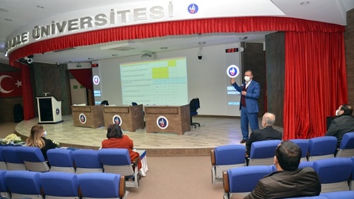 Derslerde belirli aralıklarla öÄŸrencilerimize ülkemizin etrafındaki bu durumu anlatmalı ve ‘sen bir elektronikçi, bir kimyacı, bir uluslararası iliÅŸkilerci olarak, ÅŸu anda Akdeniz’de ve Karadeniz’de petrol veya doÄŸalgaz arayan platformda çalışmak istemez misin? Bizzat iÅŸin içinde fiili olarak ya da lojistik olarak bu çalışmalara destek vermek istemez misin?’ ÅŸeklinde hedefler koymalıyız. Sınır ötesi operasyonlarda ve Can Azerbaycan’ın KarabaÄŸ’daki zaferine baktığımızda, bu baÅŸarıların belirli bir güçten kaynaklı olduÄŸunu gençlerimizin anlamasını, farkında olmasını saÄŸlamalıyız. Bir taraftan eÄŸitim-öÄŸretim mesleki bilgiler verirken, bir taraftan da o bilgiyi nerede kullanacaklarına dair öncülük etmeliyiz. Tarih boyunca ne zaman güçlü olduysak o siyasi gücün altında bilimsel güç, teknolojik geliÅŸmeye ayak uydurma, teknolojik ürün yatıyor. Bunu gençlere anlatmamız lazım” dedi. Toplantı, Rektör Prof. Dr. Ersan Aslan’ın katılımcıların sorularını cevaplaması ve YÖK tarafından hazırlanan Üniversitemizin 2018 ve 2019 İzleme ve DeÄŸerlendirme Raporlarının deÄŸerlendirilmesi ile sona erdi.