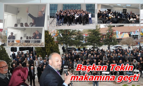 Tekin çiftini Belediye önünde ve makamda coşkulu bir kalabalık karşıladı. Belediye önünde toplanan kalabalığa hitaben kısa bir selamlama konuşması yapan Başkan Tekin, herkese teşekkür etti ve herkesin Belediye Başkanı olacağını bir kere daha yineledi. Eşiyle birlikte kalabalığı selamlaşan Başkan Tekin, makamına geçti ve resmen görevine başlamış oldu. Başkan seçildikten sonra ilk iş olarak çöpleri temizleyen ve bunu bizzat kendisi yapan Başkan Tekin, ilerisi için de nasıl bir başkanlık yapacağına dair izlenim vermiş oldu.