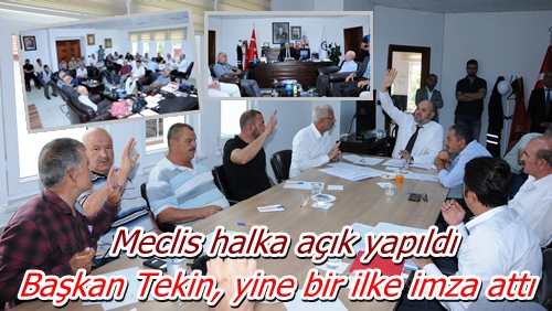 Şeffaf belediyecilik anlayışı ile belediyemizi yönetiyoruz ve herkese eşit mesafedeyiz. Tüm halkımızın emrindeyiz. Belediye meclisi ve encümen üyelerinin çalışma ofisi yoktu. Mevcut kullandığımız başkan odasını meclis üyelerine tahsis ettik. Halkımızla istedikleri zaman rahatça istişare edip sıkıntılarını gidermek için şu ana kadar hiç yapılmayan bir işlemi gerçekleştirdik." Toplantıda komisyon raporları ele alındı, gündemdeki 8 madde görüşüldü. Meclis toplantısı ilk kez halka açık yapılırken, Başkan Tekin’de yine bir ilke imza atmış oldu.