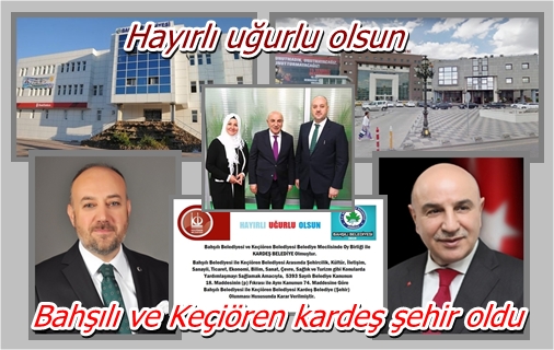 Bahşılı Belediye BaÅŸkanı Recep Zafer Tekin, ilçe ve belediye için aktif çalışmasını sürdürüyor. BaÅŸkan Tekin’in giriÅŸimleri ile Keçiören Belediyesi ve Bahşılı Belediyesi kardeÅŸ belediye ve kardeÅŸ ÅŸehir oldu. İki belediyenin meclislerinde alınan kararlar ile belediyeler kardeÅŸ belediye, ÅŸehirler de kardeÅŸ ÅŸehir ilan edildi. “İki belediye arasında ÅŸehircilik, kültür, iletiÅŸim, sanayi, ticaret, ekonomi, bilim, sanat, çevre, saÄŸlık ve turizm konularında yardımlaÅŸmayı saÄŸlamak amacıyla 5393 sayılı Belediye Kanununun 18. Maddesinin (p) fıkrası ile aynı kanunun 74. Maddesine göre Bahşılı Belediyesi ile Keçiören Belediyesi KardeÅŸ Belediye (ÅŸehir) olunması hususunda karar verilmiÅŸtir” açıklaması yapıldı.