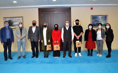 TÜBİTAK 2209-A - Üniversite Öğrencileri Araştırma Projeleri Destekleme Programı kapsamında hazırladıkları projeleriyle destek almaya hak kazanan öğrenciler Beyza Kalkan, Efe Salih Kalır, Zeynep Kangı, proje danışmanı öğretim üyeleri Doktor Öğretim Üyesi Elif Akyüz, Doç. Dr. Şule Ergöl, Doç. Dr. Harun Çelik ile Sağlık Bilimleri Fakültesi Dekanı Prof. Dr. Yurdagül Erdem ve Eğitim Fakültesi Dekanı Prof. Dr. İsmail Aydoğan, Kırıkkale Üniversitesi Rektörü Prof. Dr. Ersan Aslan’ı makamında ziyaret etti.