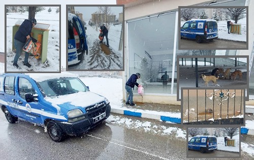 Bahşılı Belediyesi karla birlikte yiyeceksiz kalan sokak hayvanlarına destek oldu.