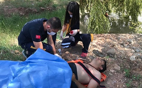 Olay yerine gelen itfaiye ekipleri Kızılırmak’ta bulunan Yasin Keskin’i kurtarmak için çalışma baÅŸlattı. Yorgun düÅŸen Keskin, tutunduÄŸu aÄŸaç dallarından ayrılarak kendini Kızılırmak’ın akıntısına bıraktı. Åžahsın ırmakta sürüklendiÄŸini gören YahÅŸihan Belediyesi İtfaiye ÇavuÅŸu Deniz Çavdar, peÅŸinden giderek kısa sürede yakaladı. Yüzme eÄŸitimli itfaiye çavuÅŸu Çavdar, boÄŸulma tehlikesi geçiren Keskin'i su üstünde tutmaya çalışırken uzun uÄŸraÅŸ sonucu kıyıya çıkardı. SaÄŸlık ekiplerince ilk müdahalesi yapılan Yasin Keskin, hastaneye kaldırıldı. Åžahsın saÄŸlık durumunun iyi olduÄŸu öÄŸrenildi. Kızılırmak'a düÅŸen ÅŸahsın kurtarılma anı da cep telefon kamerası ile görüntülendi.