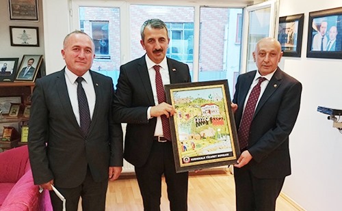 Vali Yunus Sezer’i ziyaretinde, Ticaret Borsası Yönetim Kurulu Başkanı Harun Sümer, Meclis Başkanı Sadık Bildik ile birlikte karşıladı. Sıcak ve samimi ortamda gerçekleşen ziyarette Vali Sezer 3 yıllık süre zarfında Kırıkkale’ye hizmet noktasında Ticaret Borsası ile sürekli işbirliği halinde olduklarını, çalışmalara desteklerinden dolayı teşekkür etti ve helallik istedi. Vali Sezer’e 3 yıllık görevi süresi içerisinde yaptığı hizmetlerden dolayı teşekkür eden Yönetim Kurulu Başkanı Harun Sümer “Göreve geldiği ilk günden bu yana şehrimize değer katma adına büyük bir özveriyle çalışan Valimize hizmetlerinden dolayı teşekkür ediyoruz. Kendisinin AFAD Başkanlığı görevinde de başarılı çalışmalara imza atacağına olan inancımız tamdır. AFAD Başkanlığı görevinde de bizden birisi olarak şehrimizin her zaman yanında olamaya devam edeceğine inanıyoruz. Valimiz Yunus Sezer’e ilimize hizmetlerinden dolayı bir kez daha teşekkür ediyor yeni görevinde başarılar diliyorum” dedi.