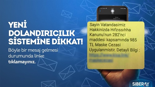 Koronavirü salgını sürecinde dolandırıcılar sahte SMS göndererek vatandaşları mağdur durumda bırakıyor. Güvenli internet kullanımı için vatandaşlara rehberlik amacıyla başlatılan SİBERAY programının sosyal medya hesaplarından yeni dolandırıcılık sistemine ilişkin bilgilendirme yapıldı. Paylaşımda, "Dolandırıcıların oltasına düşmeyelim. Güvenilirliğinden emin olmadığımız bağlantılara tıklamayalım. Güvenilir bilgi için resmi kaynakları takip edelim" sözü yer aldı.