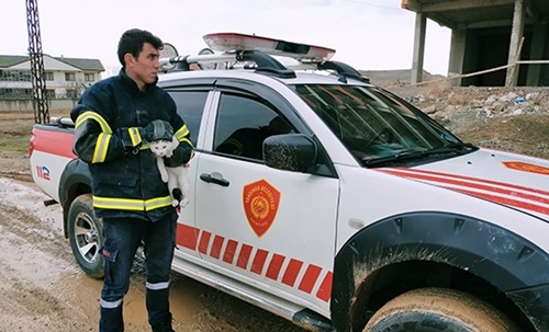 Yahşihan ilçesi Erenler Mahallesinde bulunan 15 katlı bir apartmanın çatı arasından gelen sesleri duyan işçiler, durumu itfaiye ekiplerine bildirdi. Yahşihan Belediyesi İtfaiye Müdürlüğü ekipleri, çatıdaki kediyi kurtarmak için uzun süre çaba gösterdi. Kediye zarar vermemek için titizlikle hareket eden ekipler, talihsiz hayvanı güçlükle kurtardı. Yaklaşık 4 gündür burada olduğu tahmin edilen ve aç olduğu görülen kedi ekiplerce beslenirken Yahşihan Belediyesi Geçici Hayvan Barınağına götürüldü.