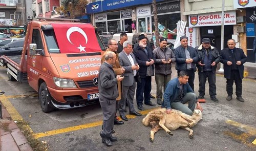 Üyelerin hizmeti için alınan çekici odanın hizmet binası önünde kurbanlar kesilerek hizmete başladı.