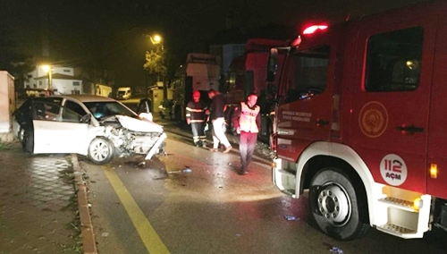Kırıkkale'de bir otomobil, park halindeki çekiciye arkadan çarptı.
