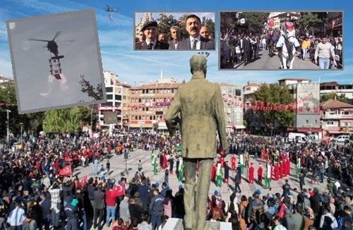 Kızılkanat İş Merkezi önünden Cumhuriyet Meydanı’na doğru yürüyüş yapan Protokol ve vatandaşlar burada Jandarma Mehteran birliğinin gösterilerini izledi. Jandarma Atlı Birlikleri de vatandaşların büyük ilgisini çekti. Büyük bir katılımın yaşandığı etkinlikte Kırıkkale Valisi Bülent Tekbıyıkoğlu, Kırıkkale Belediye Başkanı Mehmet Saygılı, Garnizon Komutanı Tuğgeneral Mehmet Ali Durmuş, Cumhuriyet Başsavcısı İbrahim Keskin, İl Jandarma Komutanı Albay Barış Cücen Siyasi Partilerin İl Başkanları, İlçe Kaymakamları, İlçe Belediye Başkanları, İl Müdürleri ve vatandaşlar katıldı.