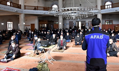 Nokta Camisi'nde namaz öncesi vatandaşlara afet öncesi, sırası ve sonrasında neler yapmaları gerektiğini anlatan İl AFAD Müdürlüğü görevlileri, bazı konuları uygulamalı gösterdi. AFAD Müdürü Mahmut Coşkun, namazın ardından gazetecilere yaptığı açıklamada, İçişleri Bakanı Süleyman Soylu'nun 2021'i "Türkiye Afet Eğitim Yılı" ilan etmesiyle Vali Yunus Sezer'in talimatıyla İl Müftülüğü ile program hazırladıklarını söyledi. Program kapsamında Nokta Camisi'nde namaz öncesi vatandaşlara "Afet Farkındalık Eğitimi" verdiklerini aktaran Coşkun şöyle konuştu: