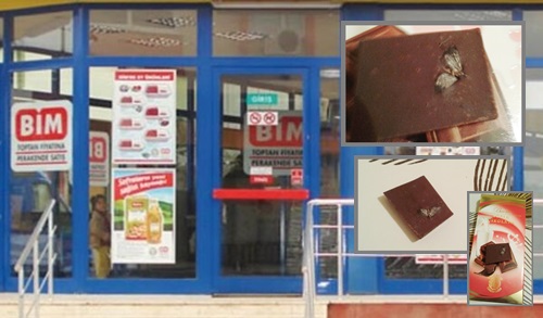 BİM isimli mağazadan çikolata alan vatandaş, evde çikolatayı açınca şok oldu. Çünkü çikolatanın içinden sinek çıktı. Çikolataya yapışmış şekilde ölü halde duran sinek miğde bulandırdı. Daha öncede mağazanın ürünlerinden ceza gerektiren ürünler çıktığı haber olmuştu. Bu kez ise çikolatadan sinek çıktığı görüldü. Vatandaşlar mağazaya tepki gösterirken, olayın hem iğrenç ve hem de suç unsuru teşkile edecek bir durum olduğunu söylediler. Oysal medyada paylaşılan görüntülere bir çok kişi tepki gösterdi.