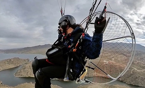 Kırıkkale'de Kızılırmak nehri üzerinde bulunan Selçuklu yadigarı Çeşnigir Köprüsü kanyonunda paramotor deneme uçuşları yapıldı.