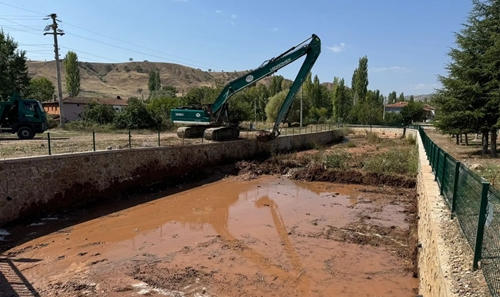 Kırıkkale’nin Sulakyurt ilçesinde, yağışlar nedeniyle sel sularının getirdiği kum, çamur ve atıklarla dolan ilçe merkezinde dere ıslah ediliyor.
