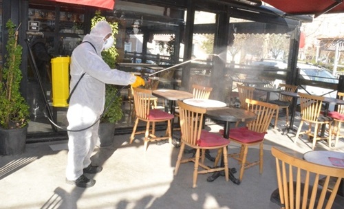 "Kontrollü normalleşme" kararı ile birlikte yeniden kapılarını açan restoranlar, lokanta ve kafeler hazırlıklarını tamamlayarak müşterilerini almaya başladılar. Belediyemizde uzun bir süredir kapalı olan kafeler, kıraathaneler ve paket servisi yapan lokantalarda dezenfekte işlemine başladı. Vatandaşların huzur ve sağlıklı bir şekilde bu noktalarda vakit geçirebilmeleri için iş yerlerini dezenfekte eden Belediye ayrıca şehir genelinde yeniden açılan iş yerlerine 2 bin litre dezenfekte dağıtarak bu iş yerlerin hijyen kurallarına uymaları konusunda yardımcı oldu. Kırıkkale Belediyesi salgın süresince cadde ve sokaklarla birlikte kamu kurum ve kuruluşlarında gerçekleştirdiği dezenfeksiyon çalışmalarını yeniden normalleşme ile birlikte kapılarını açan restoran, kafe ve lokantalarda devam etti.