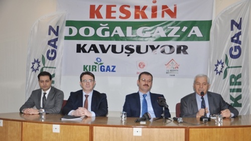 KIRGAZ Genel Müdür Yardımcısı Tuncel BektaÅŸ, "DoÄŸal gaz Keskin ilçemize inÅŸallah bu tarihten sonra hızlı bir ÅŸekilde süreci ilerleterek en kısa zaman içerisinde doÄŸal gazı kazandırmayı planlıyoruz. Keskin ilçemize devletimiz, tüm yerleÅŸim yerlerimize doÄŸal gazın gelmesi için bir karar aldı. Bu çerçevede Belediye BaÅŸkanımız kendilerine düÅŸen görevi getirdiler. Meclis kararını bize sundular. Bizim üzerimize düÅŸen görev de gerekli izinlerin alınıp projelerin yapılıp Enerji Piyasa Denetleme Kuruluna (EPDK) sunulup talepte bulunacağız. Bu süre 2020 yılının Ekim ayında sonuçlanmış olacak. 2021'in Mayıs ayında biz inÅŸallah doÄŸal gaz için ilk kazmayı vuracağız" ÅŸeklinde konuÅŸtu. Keskin Kaymakamı Tekin Erdemir Bu sene içerisinde gerekli hazırlıkları yapacağız. Bütün ilçemizi DoÄŸalgaza kavuÅŸturacağız. İlçeyi topyekün yenileyeceÄŸiz. Keskin'de 10 evden 4'ü harabe içerisinde. Daha güzel evler için sizin de elinizi taşın altına koymanız gerekiyor. Bu alt yapıya ayak uydurmamız lazım.