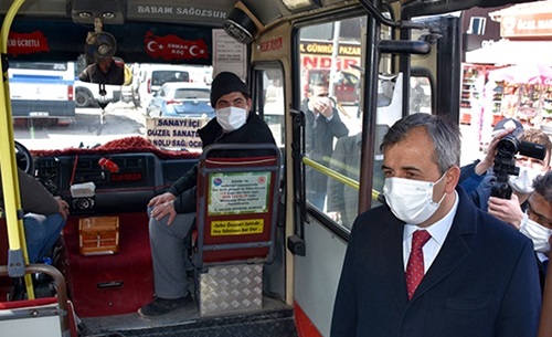 Vali Yunus Sezer, Belediye Başkan Yardımcısı Mutlu Erol Bakır ve beraberindeki salgın denetim ekipleri, kent merkezindeki dolmuş duraklarında HES kodu denetiminin yapılıp yapılmadığını, maske, mesafe ve hijyen kurullarına uyumu kontrol etti. Vatandaşlara uyarılarda bulunan Sezer, salgın denetim ekipleri, belediye ve odalarla vatandaşlara salgınla ilgili alınacak tedbirler noktasında uyarılarda bulunduklarını söyledi.