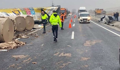 Kaza, Kırıkkale-Kırşehir D765 kara yolu üzerindeki Yeniyapan mevkiinde meydana geldi. Edinilen bilgiye göre, H.U. idaresindeki 67 UF 460 plakalı TIR, yola çıkan yaban domuzuna çarpmamak için manevra yaptığı sırada sürücünün direksiyon hakimiyetini kaybetmesi sonucu kontrolden çıkarak şarampole devrildi. TIR’n dorsesinde bulunan rulo şeklindeki demir plakalar ise yola savrularak M.A. yönetimindeki 63 FC 729 plakalı TIR’a çarptı. 112 Acil Çağrı Merkezi'ne yapılan ihbar üzerine olay yerine sağlık ve polis ekipleri sevk edildi. Yaralananın olmadığı her iki kazada da araçlarda büyük çapta maddi hasar oluştu. Trafik ekipleri tarafından yapılan incelemenin ardından araçlar çekici yardımıyla yoldan kaldırılarak trafik normale döndürüldü.