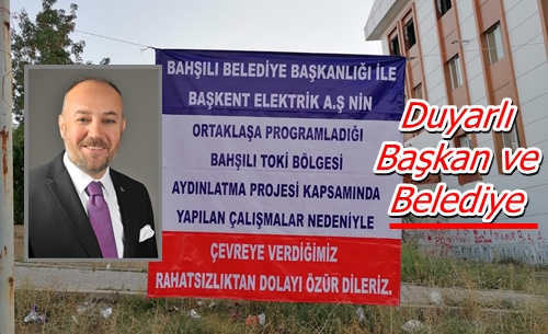 Bahşılı Belediyesi tarafından Başkent Elektrik Dağıtım AŞ ile TOKİ bölgesinde aydınlatma çalışması başlatıldı. Belediye Başkanı Recep Zafer Tekin, çalışma dolayısıyla duyarlılık örneği sergileyerek bölge sakinlerine yönelik olarak çalışma süresince yaşanacak rahatsızlıktan ötürü özür içeren bir pankart astırdı.
