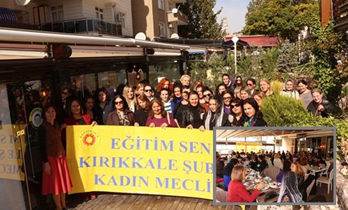 EÄŸitim Sen Kırıkkale Åžubesi, Kadın Meclisi kadın üyeler için tanışma, kaynaÅŸma amacıyla kahvaltı etkinliÄŸi düzenledi. EÄŸitim Sen’li kadınlar Kahveci Pehlivan’da kahvaltıda buluÅŸtu. 100’e yakın katılımın olduÄŸu kahvaltı etkinliÄŸinde eÄŸitim emekçisi kadınların sorunları, hakları konuÅŸulup müzik dinletisi yapıldı. Kadınlar türkülere yer yer eÅŸlik etti, yer yer halaya durdu. Kadınlar, kadınların eÅŸitliÄŸi ve özgürlüÄŸünü savunduÄŸu, hakları içi mücadele ettiÄŸi için EÄŸitim Sen’li olduklarını ifade ettiler.