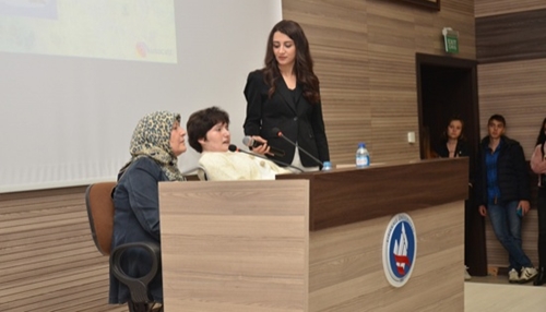 SöyleÅŸiye ‘Engelli Limanı’ adlı kitabın yazarı serebral palsi (beyin felci) hastası Hatice Åžeyda Canbolat ve ailesi, Kırıkkale Üniversitesi akademik ve idari personeli ile çok sayıda öÄŸrenci katıldı. Üniversite Sosyoloji Bölümü Yüksek Lisans öÄŸrencisi olan yazar Hatice Åžeyda Canbolat, annesi ile birlikte, acı-tatlı hatıralarıyla dolu yirmi üç yıllık hayat hikayesini, düÅŸüncelerini ve eÄŸitim sürecini dinleyicilere anlattı. Program konuÅŸmacılara hediyelerinin verilmesi ve Hatice Åžeyda Canbolat’ın kitaplarını imzalaması ile sona erdi.