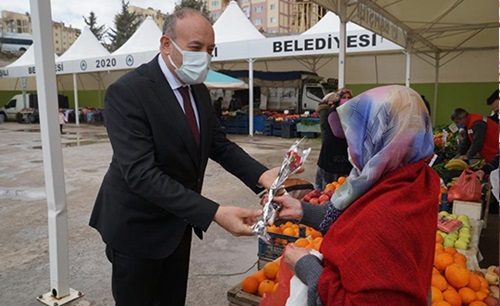 Bahşılı ilçesinde de 8 Mart Dünya Kadınlar Günü dolayısıyla kadınlara karanfil ve eşarp dağıtıldı.
