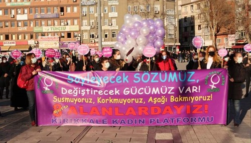 Kırıkkale’de KESK’e baÄŸlı kadın platformu üyeleri, 8 Mart Dünya Kadınlar Günü nedeniyle bir araya geldiler. Platform üyeleri adına konuÅŸan Necla Büyükyıldız, “Söyleyecek sözümüz, deÄŸiÅŸtirecek gücümüz var! YaÅŸasın kadın dayanışması” dedi. Büyükyıldız, “8 Mart, dünyanın neresinde olursa olsun kadınlara uygulanan sömürüye, ayrımcılığa, baskıya karşı yürütülen, kadın haklarının kazanılmasında verilen direniÅŸin simgeleÅŸtiÄŸi bir mücadele günüdür. EÅŸitsizliÄŸin, sınırsız tüketimin, sömürünün, yoksulluÄŸun sistemleÅŸtiÄŸi ataerkil kapitalizmin, kadın ile kurduÄŸu "ucuz emek - kutsanmış annelik" iliÅŸkisinin neoliberal politikalarla tüm dünyada yeni kölelik koÅŸullarını dayattığı bu dönemde, kadının varoluÅŸ mücadelesi çok daha anlamlı bir hale gelmiÅŸtir.