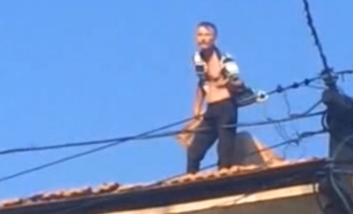 Kırıkkale’de ev sahibine kızan kiracı, oturduğu evin çatısına çıkarak kiremitleri aşağı fırlattı.
